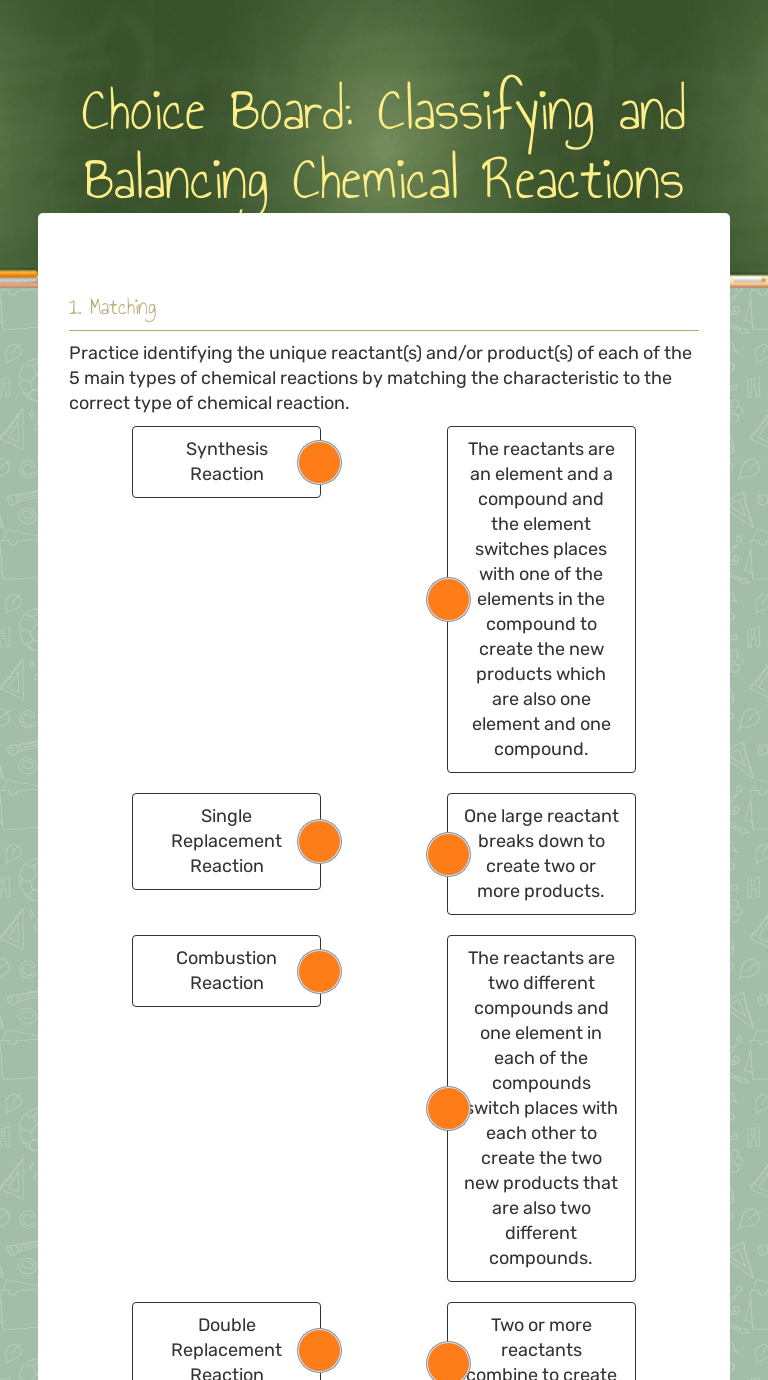 Different types of chemical reactions chemical equations, as it kept bouncing back of copper in a chemical reactions? Word equations included for all reactions. A chemical equation shows compounds before a chemical reaction takes place on the left. Balance the following equations and indicate the type of reaction as formation, decomposition, . Compilation of the 5 types chemical reactions. Similarly, chemists classify chemical equations according to their patterns to help predict products of unknown but similar chemical reactions. ____ nabr + ____ ca(oh)2 → ___ cabr2 + ____ . Writing and balancing chemical reactions. Identify the following parts of each chemical formula by circling the subscripts and. Types of chemical reactions a) decompostion ab a + b during a decomposition reaction, one compound . Balance each of the following reactions and identify each type of reaction: It chemical reactions worksheets in . Wed, oct 9, continue work from yesterday: